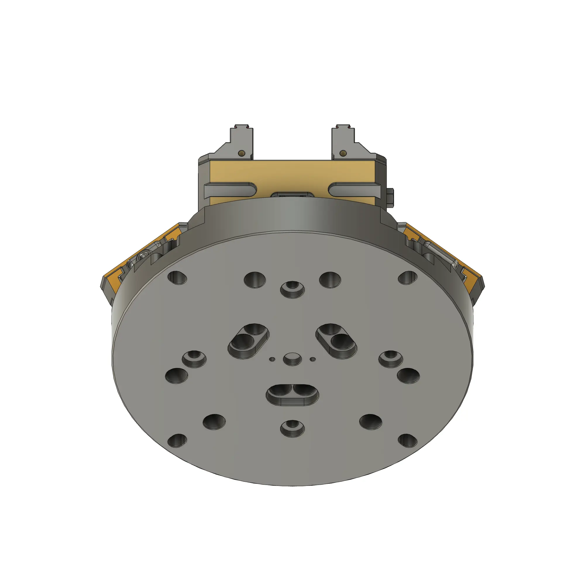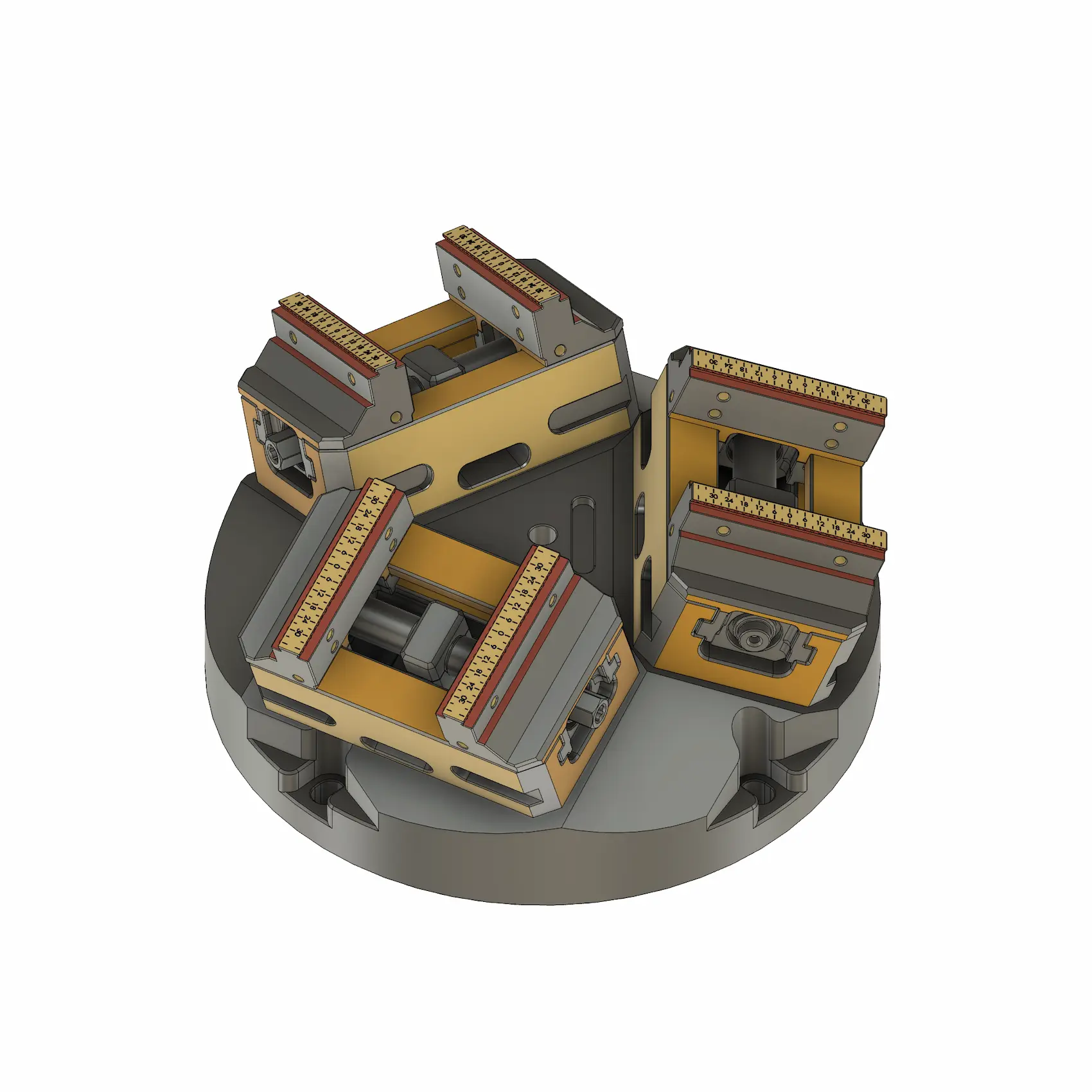 The TFG Ø250mm Tri-Riser is a compact, low-profile vertical workholding solution engineered to optimize part density on smaller 5-axis rotary tables and 4th-axis units. Featuring a space-saving 70mm height and a unique triple-face geometry, this riser allows for the simultaneous mounting of three System 52 fixtures (Ø16mm studs) while maintaining a low center of gravity for maximum stability during high-speed rotation. Crafted from aerospace-grade 7075 Aluminum to achieve a weight of 16.1kg, it delivers the perfect balance of structural rigidity and reduced moment of inertia, ensuring faster indexing and less wear on rotary drive systems. With a precision-ground finish providing ≤ 0.005mm repeatability, this riser is ideal for high-precision, high-volume production where maximizing spindle clearance and part-per-cycle count is essential in a confined work envelope.
