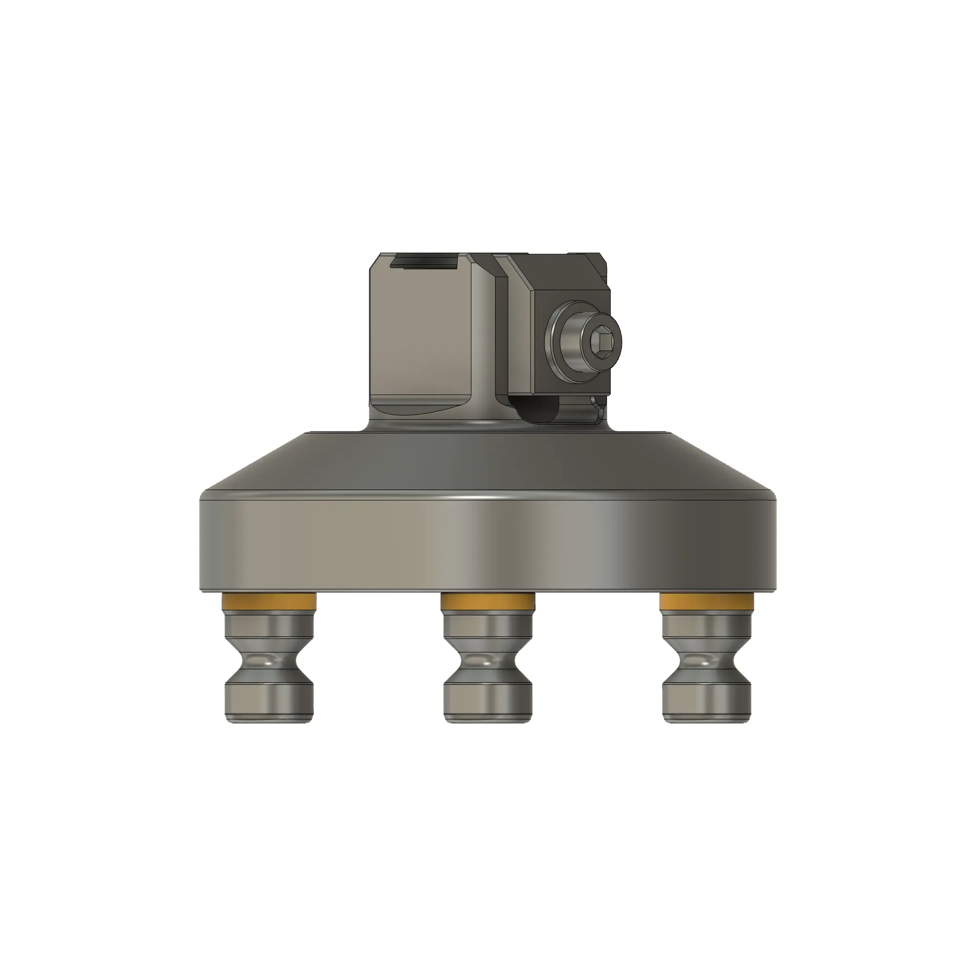 The TFG 28x32mm Dovetail Clamp is a precision-engineered, small-format workholding solution designed for high-access 5-axis machining of micro to small-scale components. Designed for the System 52 grid (Ø16mm studs), this fixture provides an incredibly secure mechanical grip on stock sizes ranging from 12mm to 25mm while requiring only a 2.5mm dovetail depth. Despite its lightweight 1.7kg design, the Ø97mm base offers a stable, rigid platform that ensures maximum tool clearance for complex 5-sided operations. Crafted from hardened tool steel for long-term durability and ≤ 0.005mm repeatability, it is the ideal choice for medical and electronic component manufacturing where minimizing material waste and achieving total spindle access are critical to production efficiency.